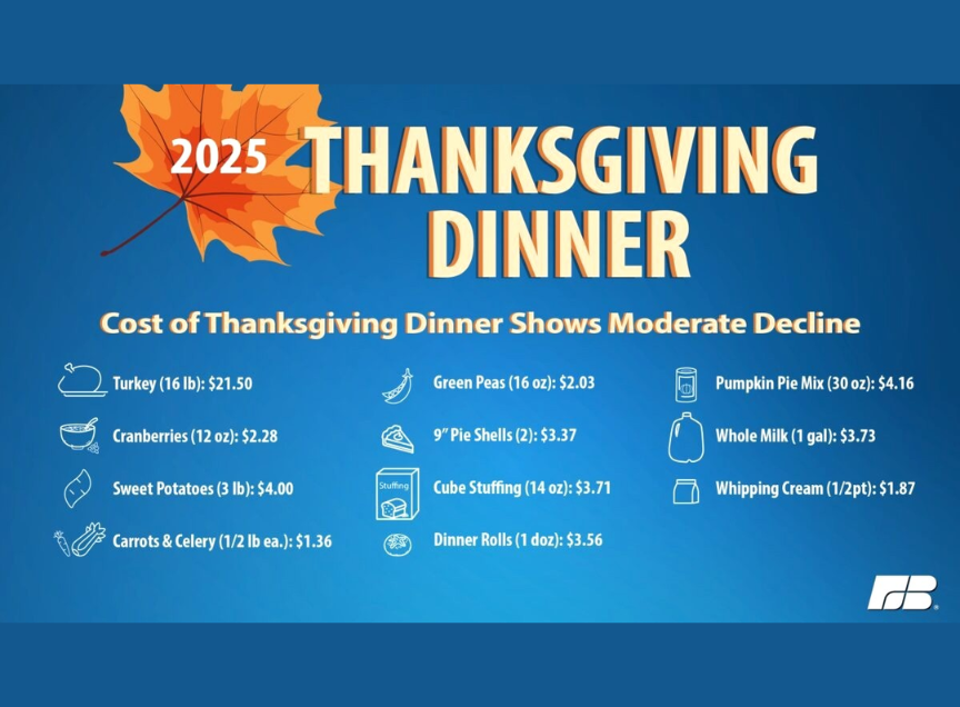 “It’s encouraging to see some relief in the price of turkeys, as it is typically the most expensive part of the meal,” Dr. Faith Parum, AFBF economist, said. “Farmers are still working to rebuild turkey flocks that were devastated by avian influenza, but overall demand has also fallen. The combination will help ensure turkey will remain an affordable option for families celebrating Thanksgiving.”