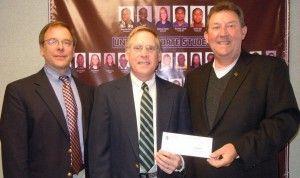 Mark Waller, sales and processing director for Ingram Farms and vice chairman for the USPOULTRY board of directors, presented the check to Dr. David Peebles, professor and interim head of the university's Poultry Science Department at Mississippi State University. Mark Leggett, president of the Mississippi Poultry Association, assisted in the check presentation.